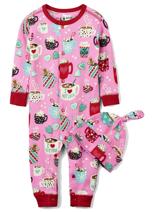 Infant Coverall with Cap - Girl's Holiday Cocoa -