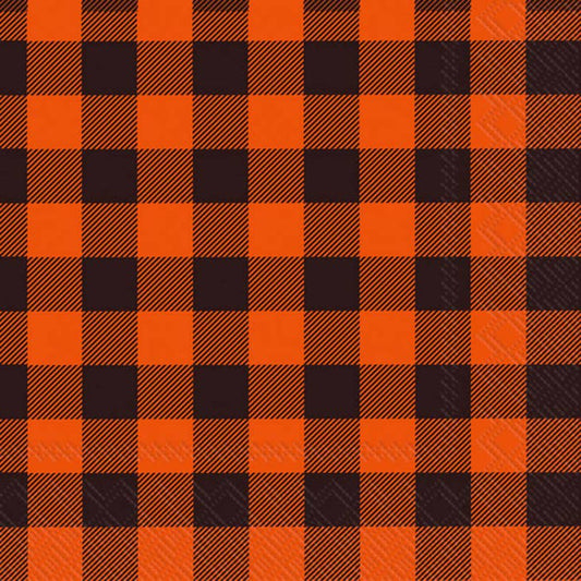 Autumn Paper Cocktail Napkins 20 CT Buffalo Check Orange