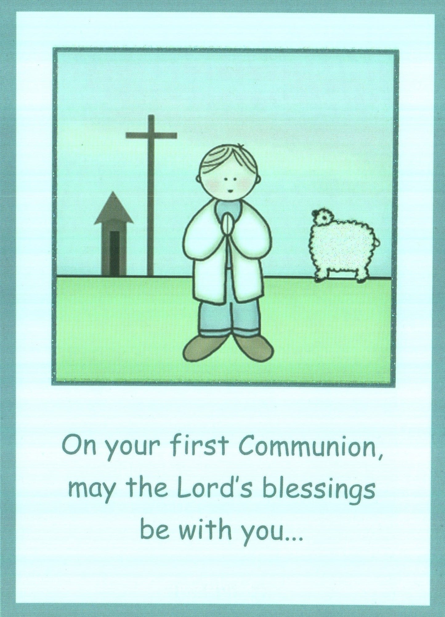 Inside: and may the gentle hand of Jesus guide and protect you always. With cross image in the background.