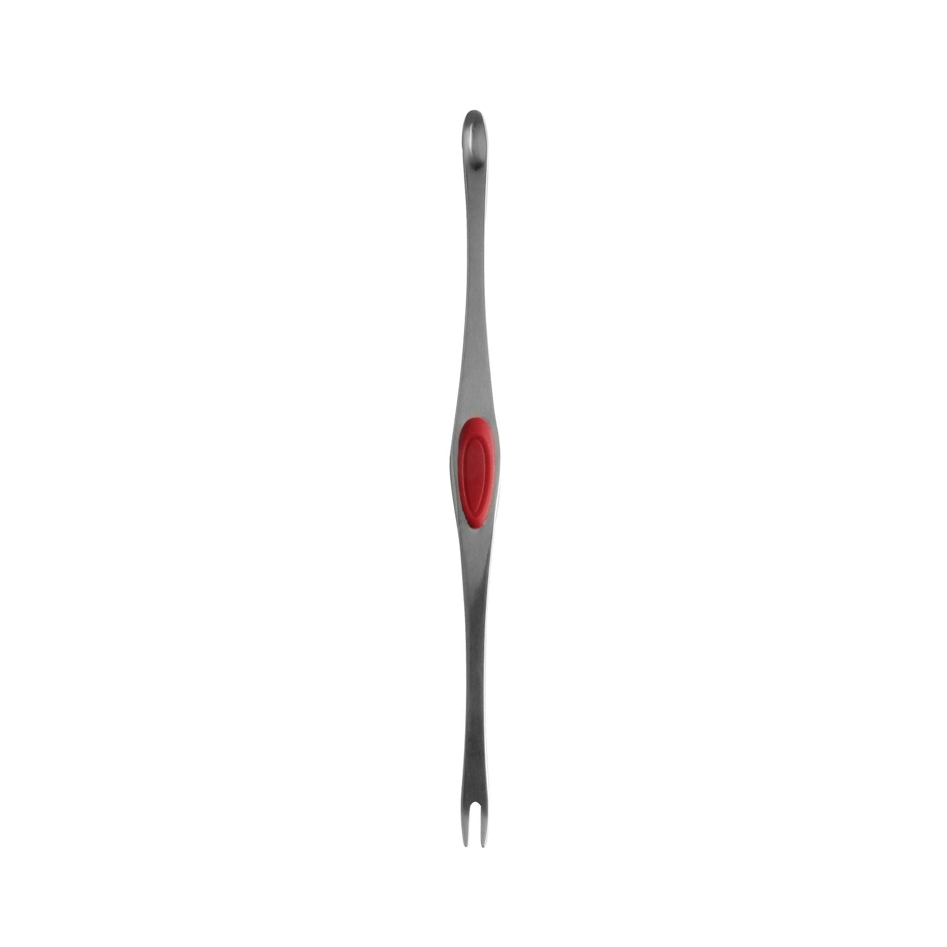 - Rounded scoop separates meat away from the shell while the pronged end removes it; comfort silicone grip remains slip-free, even when hands are wet