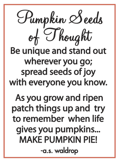 Pumpkin Seeds of Thought. Be unique and stand our wherever you go; spread seeds of joy with everyone you know. As you grow and ripen patch things up and try to remember when life gives you pumpkins... MAKE PUMPKIN PIE!
