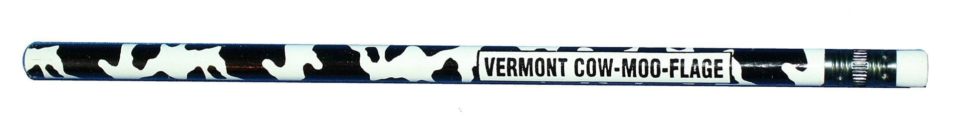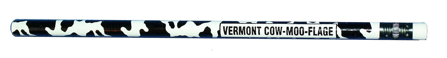 Wooden pencil with cow print and the words 'Cow-moo-flage' printed on.