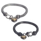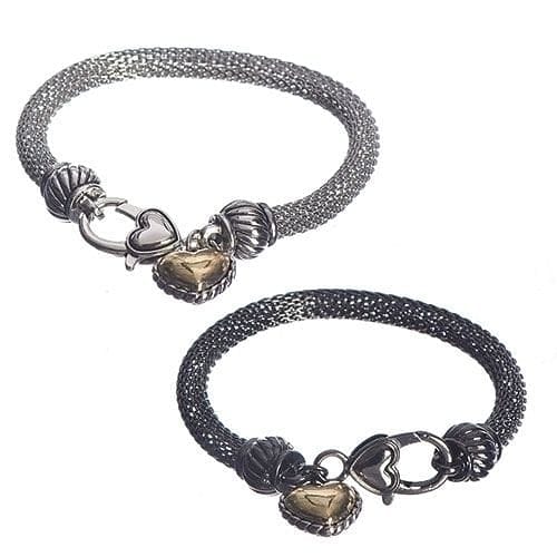 This silver rope bracelet is accented with a large clasp and a golden heart charm with a braided edge. Where the charm and clasp meet on the bracelet is evocative of the famous Irish Claddagh ring, where two hands meet at a crowned heart to represent love, loyalty, and frienship. Allow this beautiful bracelet to exhibit just that!