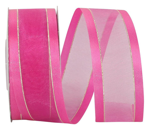 Sheer Satin Edge Metallic Fuchsia Ribbon - Per Yard