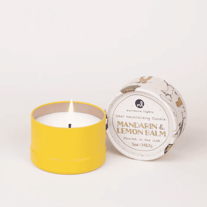 Put the PawsON unpleasant odors caused by our favorite furry friends. Odor neutralizing technology traps common pet smells and replaces them with aromatherapeutic fur-eshness. Fragrances are made with essential oils. Packaging is patterned with custom illustrations of Northern Lights employee pets.