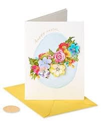 Brighten someone's Easter with this egg-cellent card, only from Papyrus! This watercolor design features a pretty garland of red, yellow, pink, and lavender flowers wrapped around a pale blue Easter egg. Charming and spring-like, with a simple upbeat message, this card is the perfect way to wish someone all the best this Easter season.