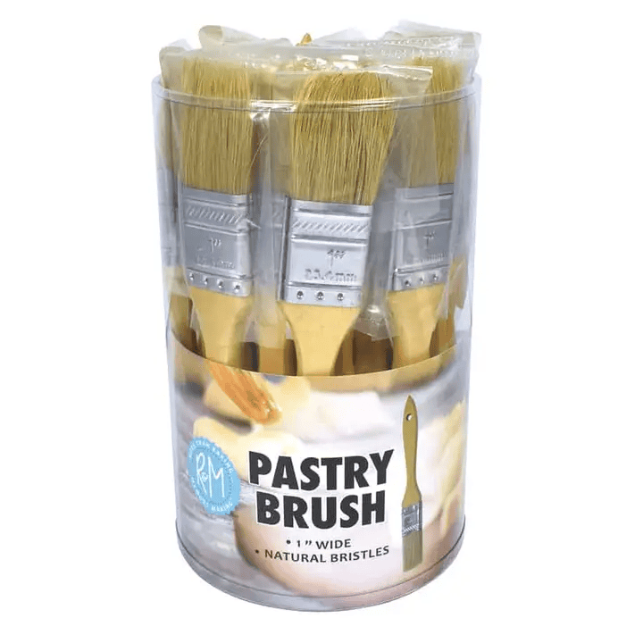 1" Pastry brush makes it easy to spread glazes, oil, butter and egg wash on your baked creations. Natural wood. Hand wash and dry thoroughly before storing.