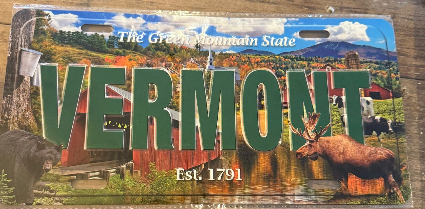 Stamped, Full Size Metal License Plate with 'GRN MTN' Stamped into the Plate.