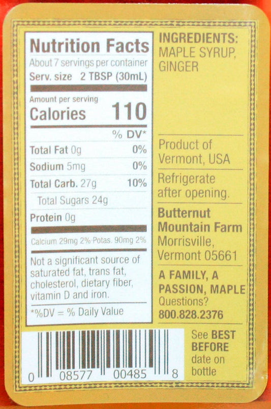 Butternut VT Maple Syrup - Sweet Ginger Infused - 6.7 oz