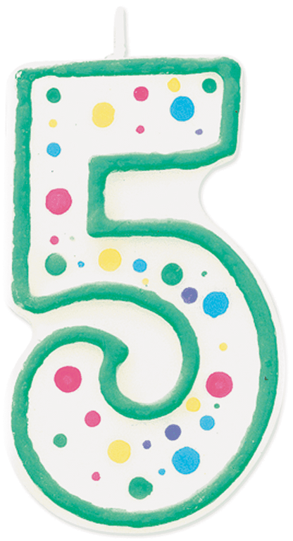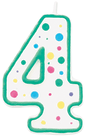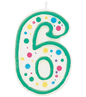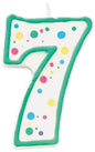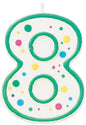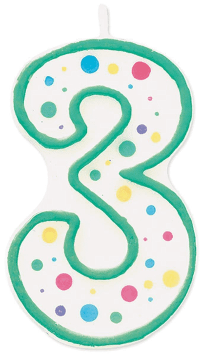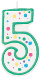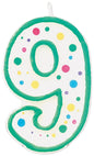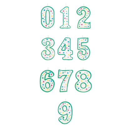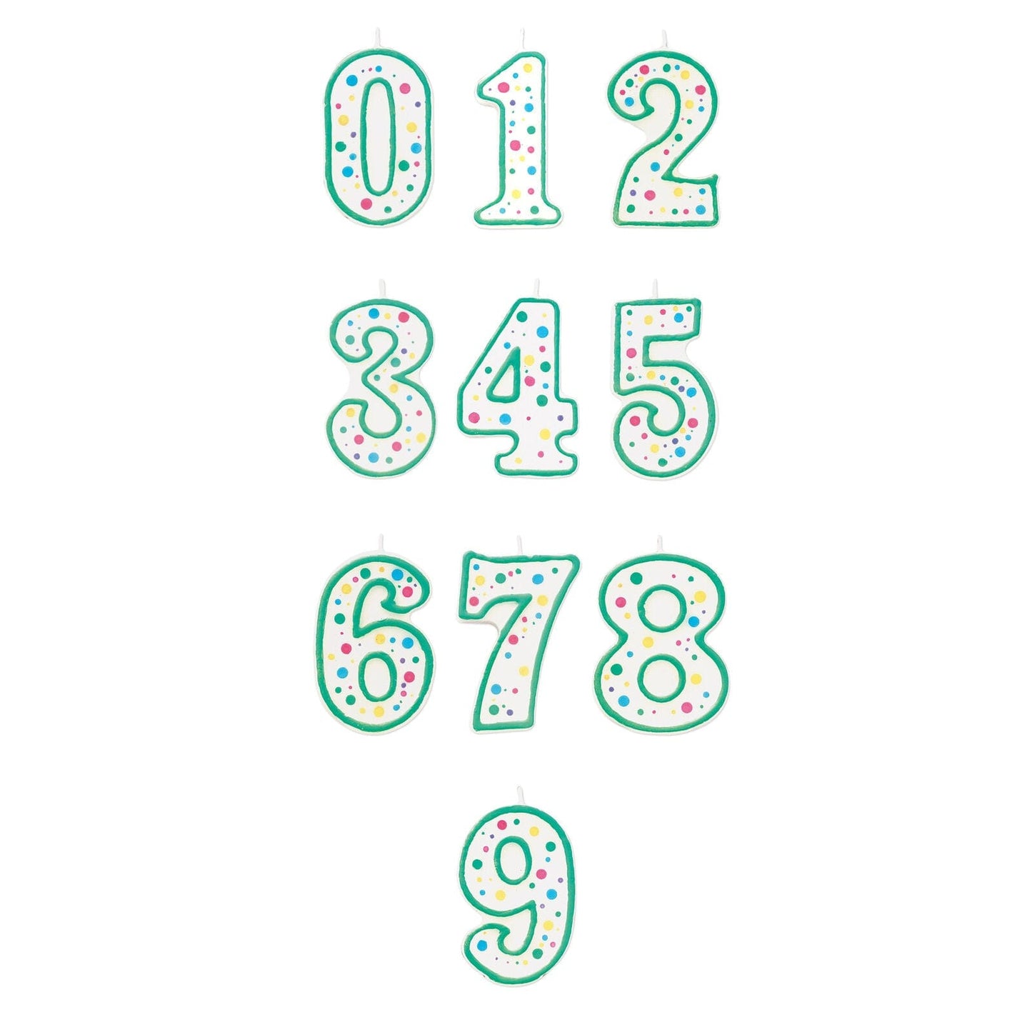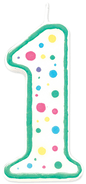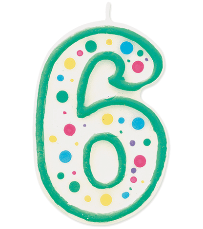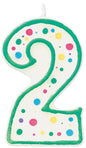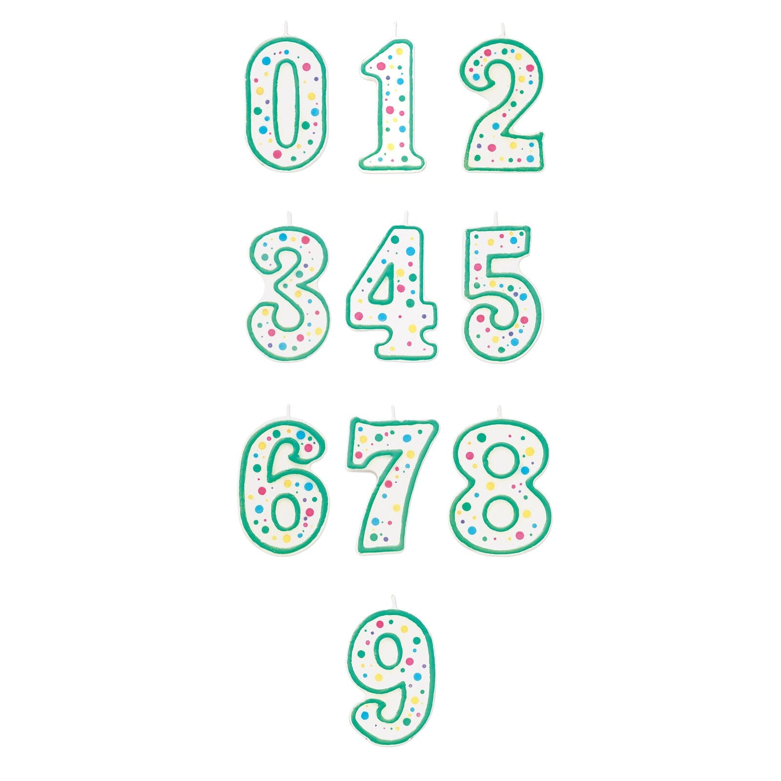 Make the birthday extra special with number candles. Includes one three inch high polka dots with green trim candle number by Wilton