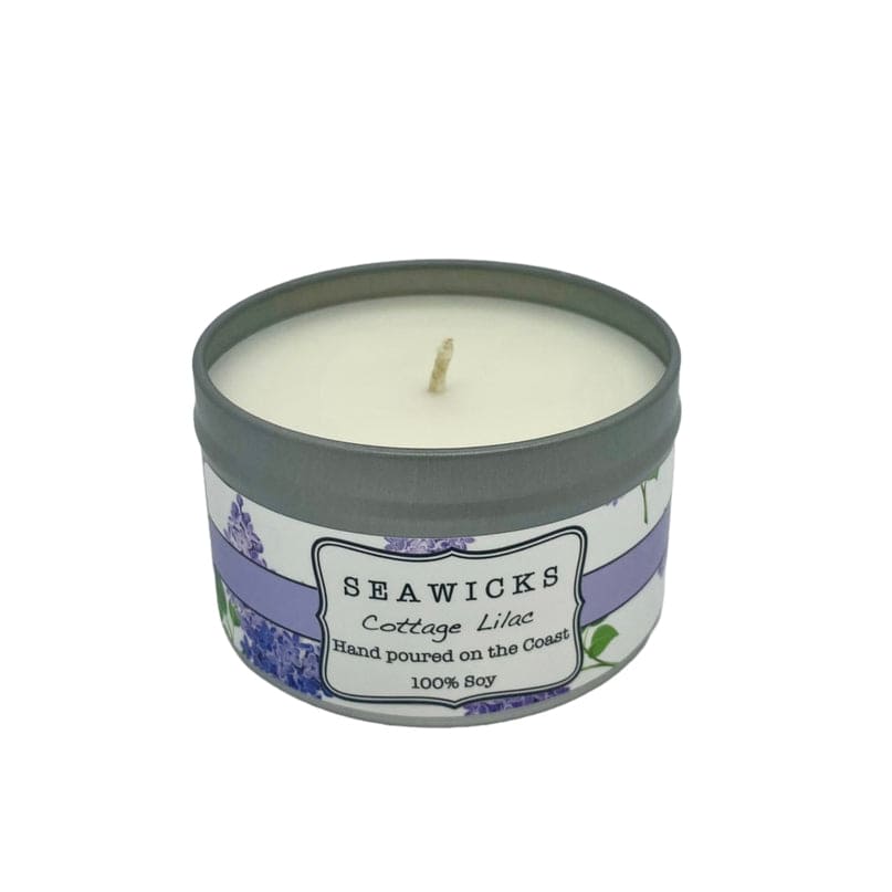 Evokes memories of the fragrant blossom hugging our summer cottages. A 8 oz tin (6oz pour) in USA made footed travel tin. All natural cotton wick. No dyes. We use essential and perfume grade oils all phtalate free. Up to 65 hours burn.