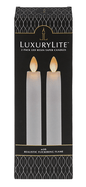 Battery operated 8 inch tall Taper Candle set offers a realistic flickering flame, but without the risk of fire or dripping wax. Blow-out feature allows you to shut them off by simply 'Blowing' out the candle!
