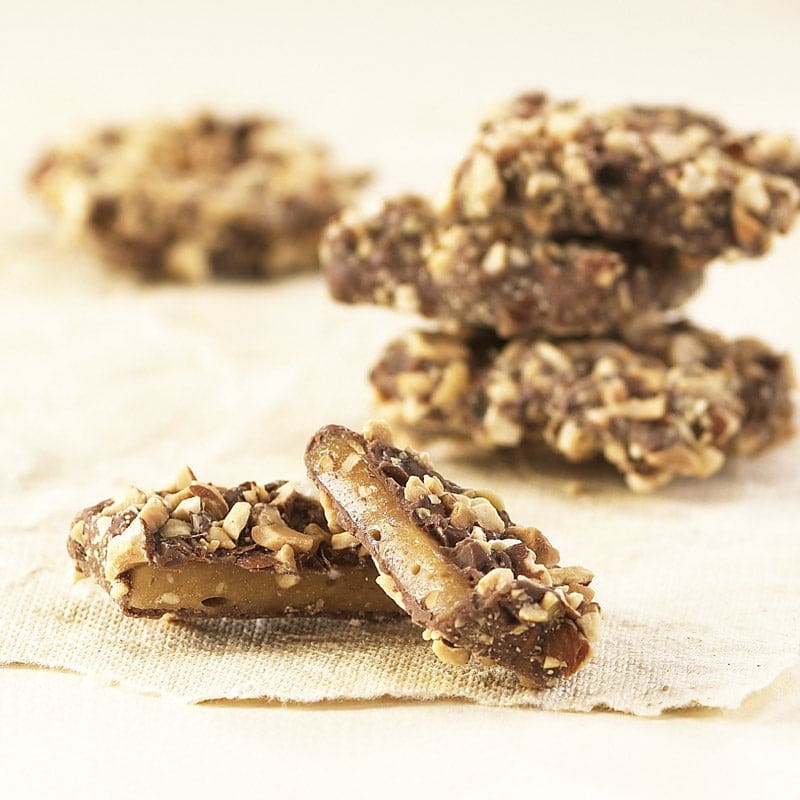 This one seems to be everyones favorite, toffee center, dipped in chocolate and covered in crushed almonds, you just can't stop at one, from Ashers. Handpacked in a 1 lb. box