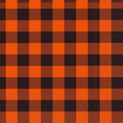 Autumn Paper Cocktail Napkins 20 CT Buffalo Check Orange