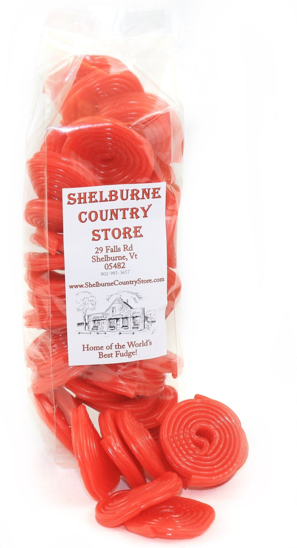 These sweet, chewy ropes of strawberry licorice have been rolled up into a tasty wheel to make a snack that is just as fun to play with as it is to eat! Unroll this wheel of licorice as you go or bite into it all at once. No matter how you choose to eat it, you're sure to love the sweet strawberry flavor of these red licorice wheels.