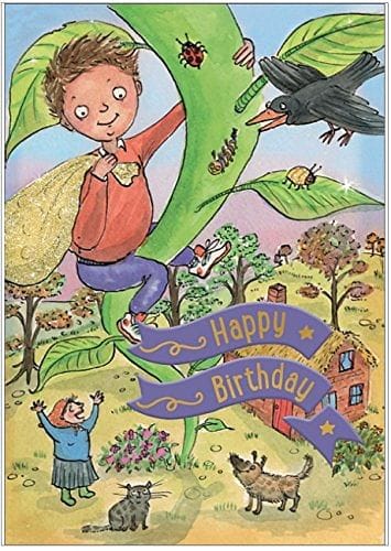 Jack And The Beanstalk Story Birthday Card is a birthday card to be treasured! Contains a beautifully illustrated 12-page fairy story and an inside card message that reads: "Happy Birthday"