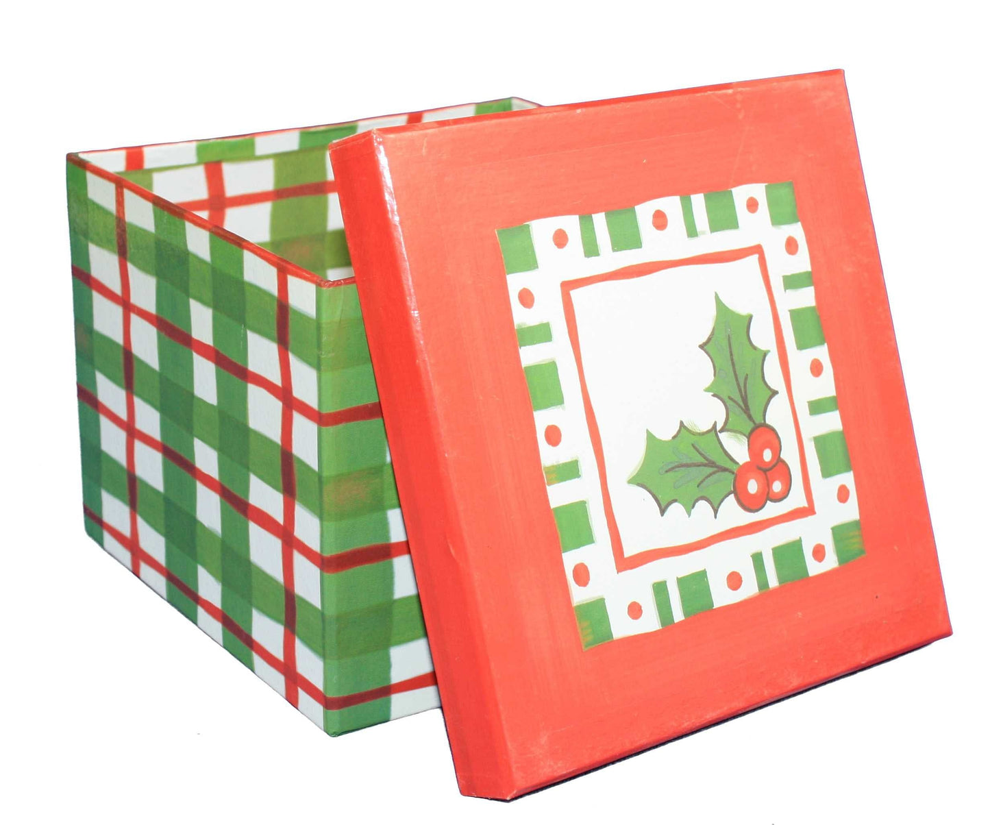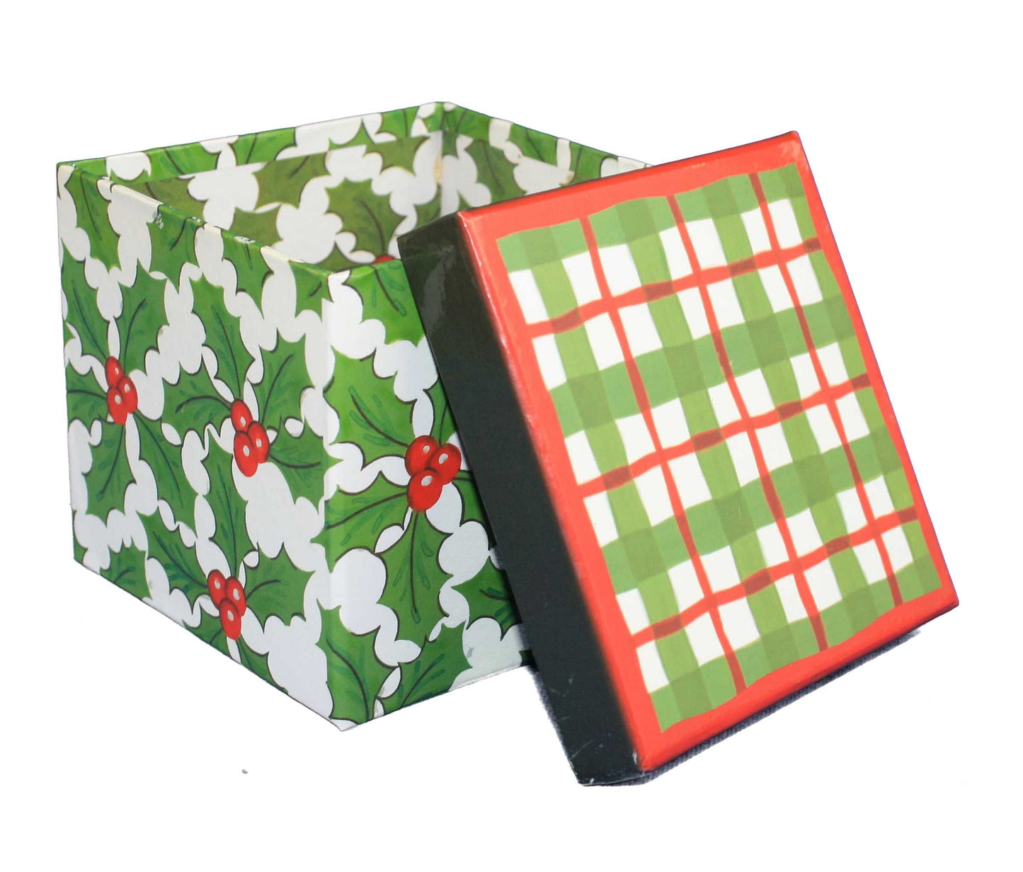 Holly Plaid Square Gift Box - - Shelburne Country Store