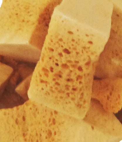 One taste, however and you could be addicted. Old fashioned puff candy is a light, airy molasses-flavored candy that looks similar to a sponge, but taste like heaven. Crunchy when you first bite into it, it quickly melts in your mouth like cotton candy.