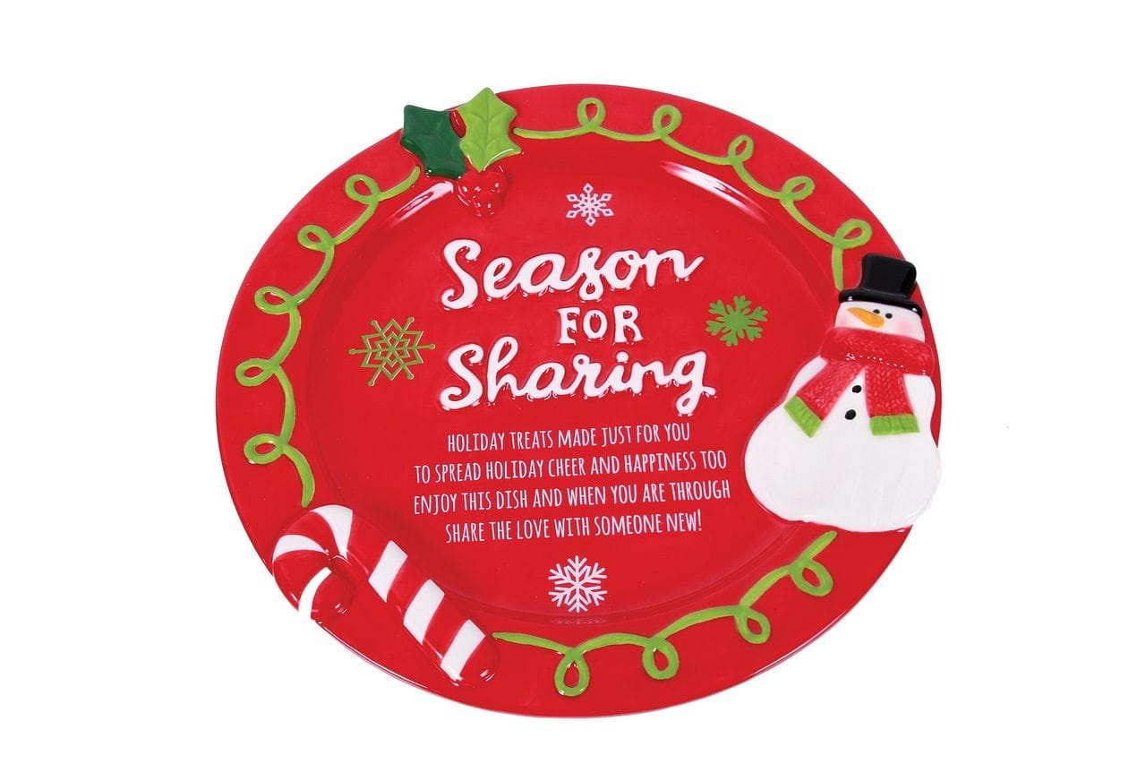 10" ceramic, hand-painted Treat Plate has raised accents and lettering. The Sentiment reads: Holiday treats made just for you to spread Holiday Cheer and Happiness too. Enjoy this dish and when you are through share the love with someone new.