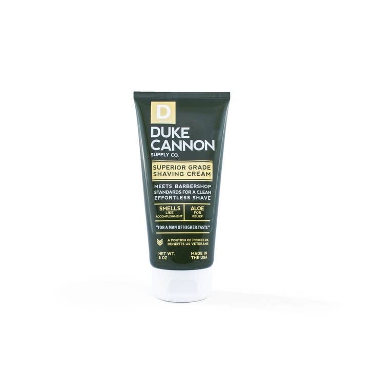 Duke Cannon's barbershop formula shaving cream is engineered with only Superior Grade ingredients: