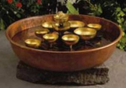 - Materials: 10 polished brass bells, copper bowl, continuous-duty pump